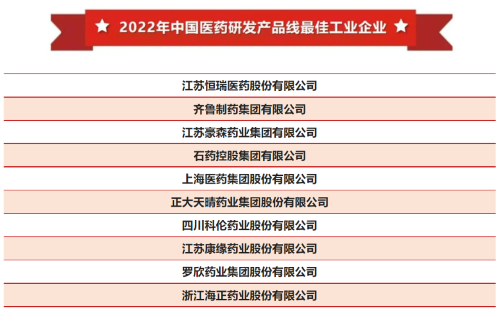 稳居榜首!金年会- 金字招牌医药再次登顶“中国医药研发产品线最佳工业企业”