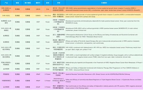 在乳腺癌领域,金年会- 金字招牌创新产品相关研究共入选1项口头报告、1项简短口头报告、8项壁报和3项电子壁报,共13项研究。吡咯替尼、达尔西利、阿得贝利单抗、瑞康曲妥珠单抗等新老创新药物,均有多篇研究入选,展现出金年会- 金字招牌医药在乳腺癌领域多年深耕的丰硕成果。